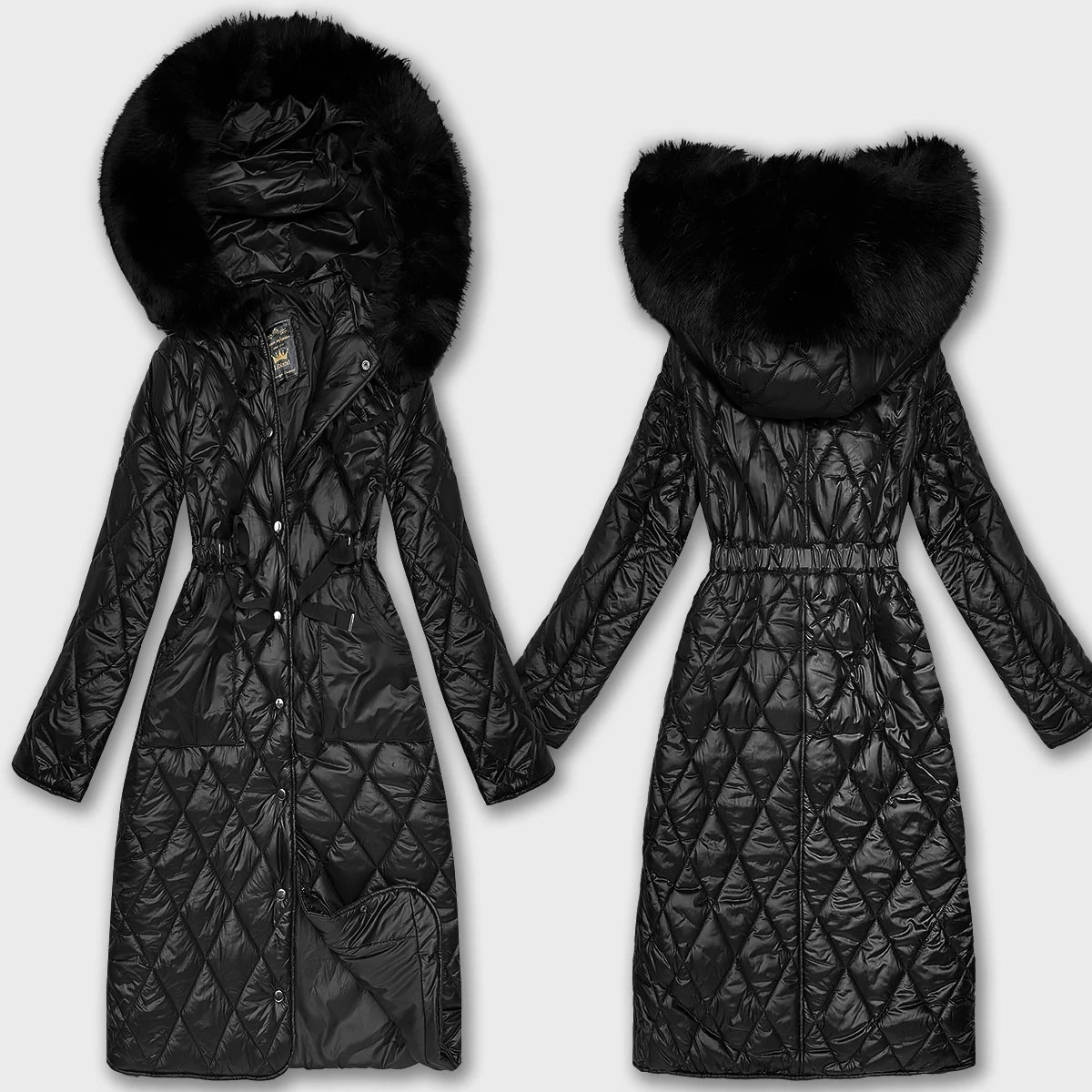 Černý prošívaný kabát s kapucí Libland (LD-7768)