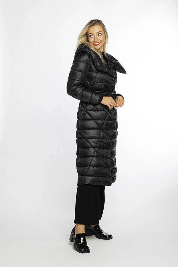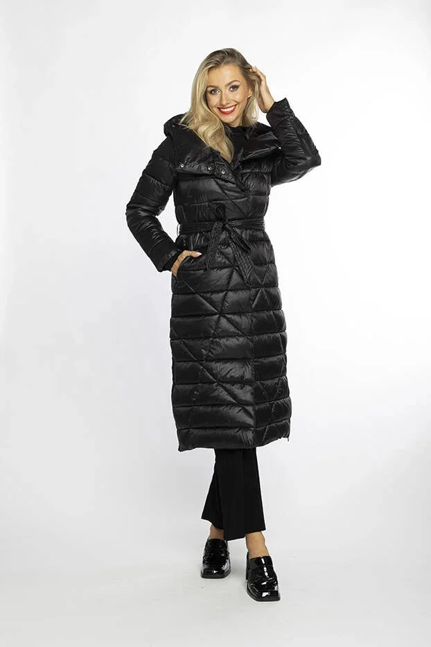 Černý prošívaný kabát s kapucí model 21247100 - Ann Gissy