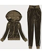 Velurový komplet, který se skládá z mikiny a teplákových kalhot.