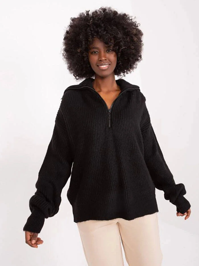 Přidání recenze k Černý volný dámský svetr s rozepínacím rolákem (0374)