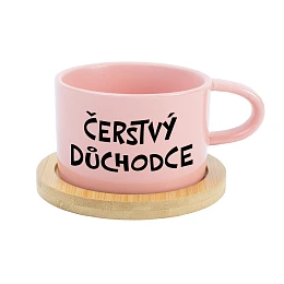 Keramický hrneček s bambusovým podtáckem – Čerstvý důchodce