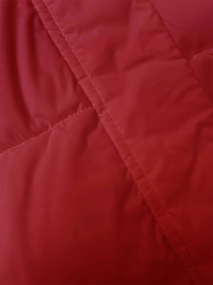 Bunda má volný střih, je zateplená syntetickou péřovou výplní, má dvě kapsy bez zapínání a zapíná se zipem. Model má stojáček a kapuci, kterou není možné odepnout. Na koncích rukávů jsou skryté stahovací lemy. Na spodním okraji modelu je stahovací lem v podobě gumy. Bunda má délku k bokům.