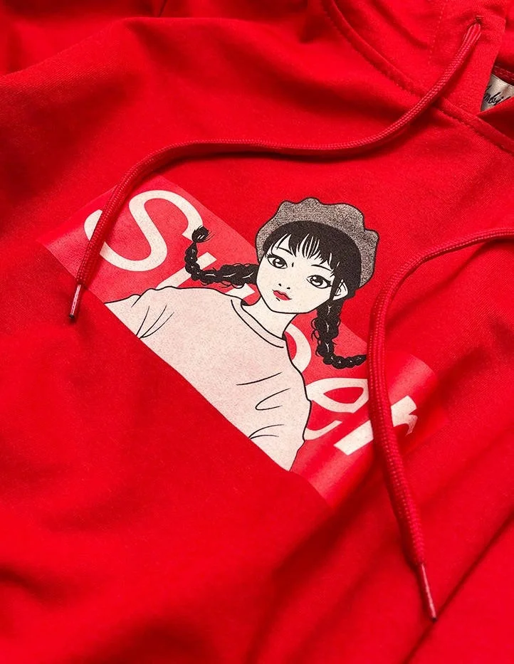 Mikina má volný střih, délku k bokům a obléká se přes hlavu. Rukávy a spodní okraj modelu jsou olemované stahovacími lemy. Model má jednu "klokaní" kapsu.