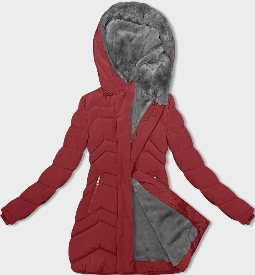 Přidání recenze k Červená dámská zimní bunda s kožešinovou podšívkou model 21791793 - LHD