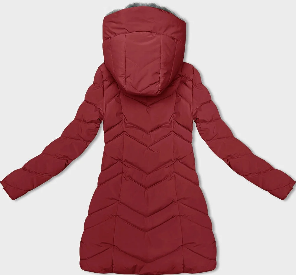 Červená dámská zimní bunda s kožešinovou podšívkou model 21791793 - LHD