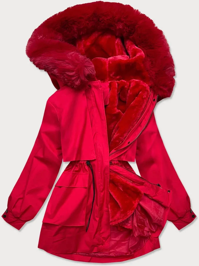 Červená dámská zimní bunda s odepínací kožešinovou podšívkou (b2715-4)