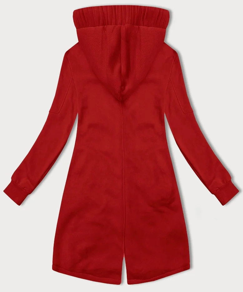 Červená dlouhá dámská rozepínací mikina s kapucí LHD (AMG-693A)