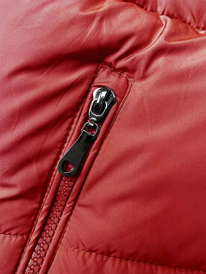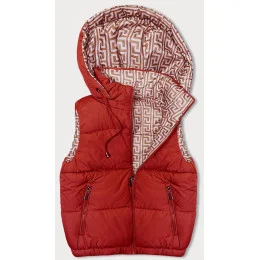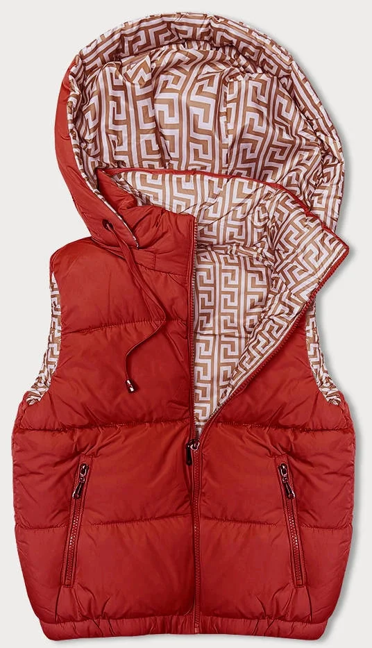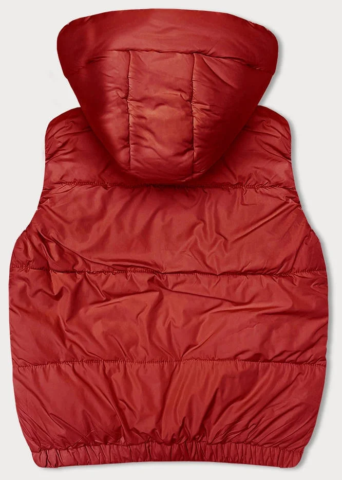 Červená krátká péřová dámská vesta s kapucí (16M9091-270)