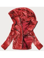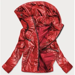 Červená lesklá dámská bunda s kapucí (B9575)