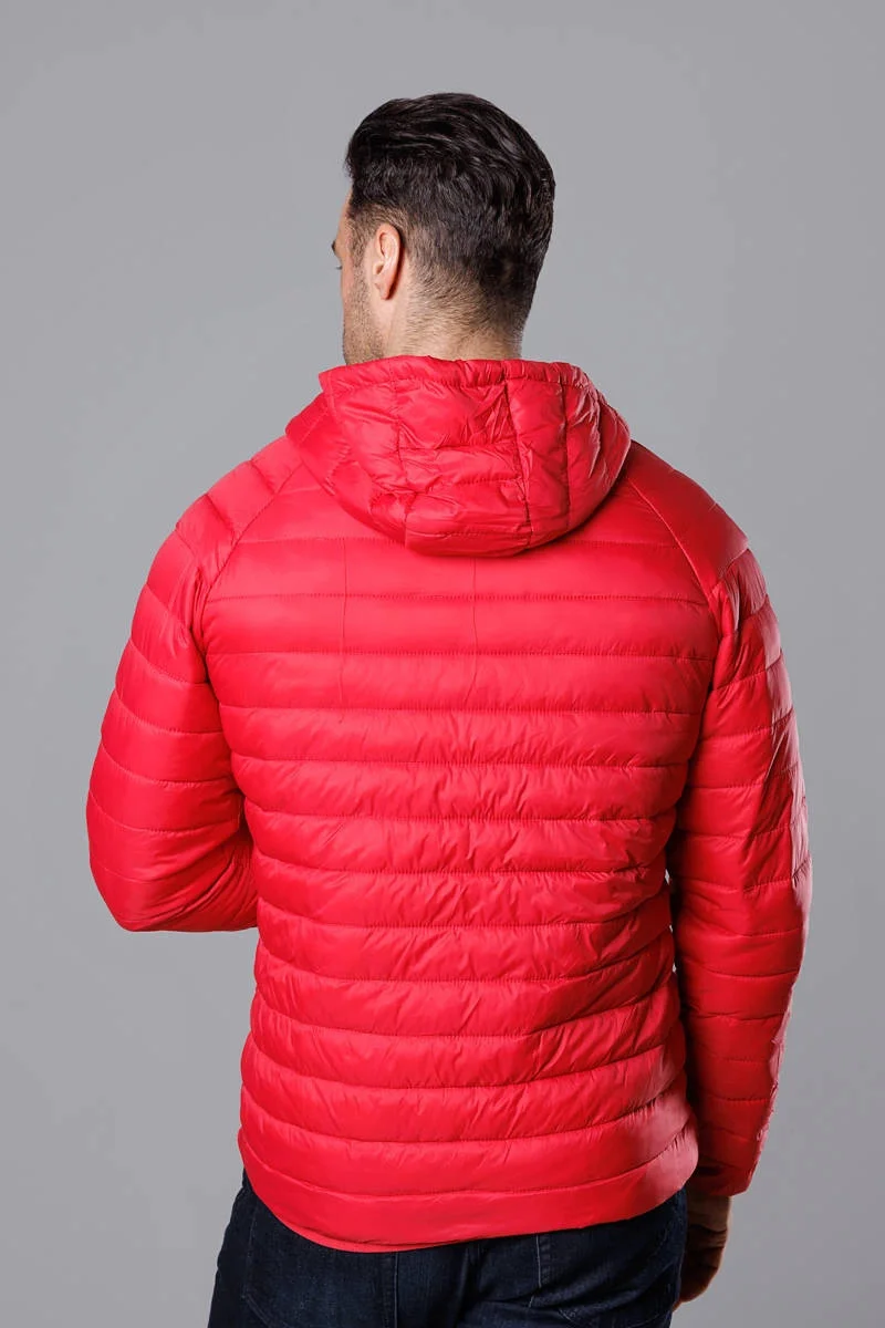 Červená pánská prošívaná bunda s kapucí (HM112-5)