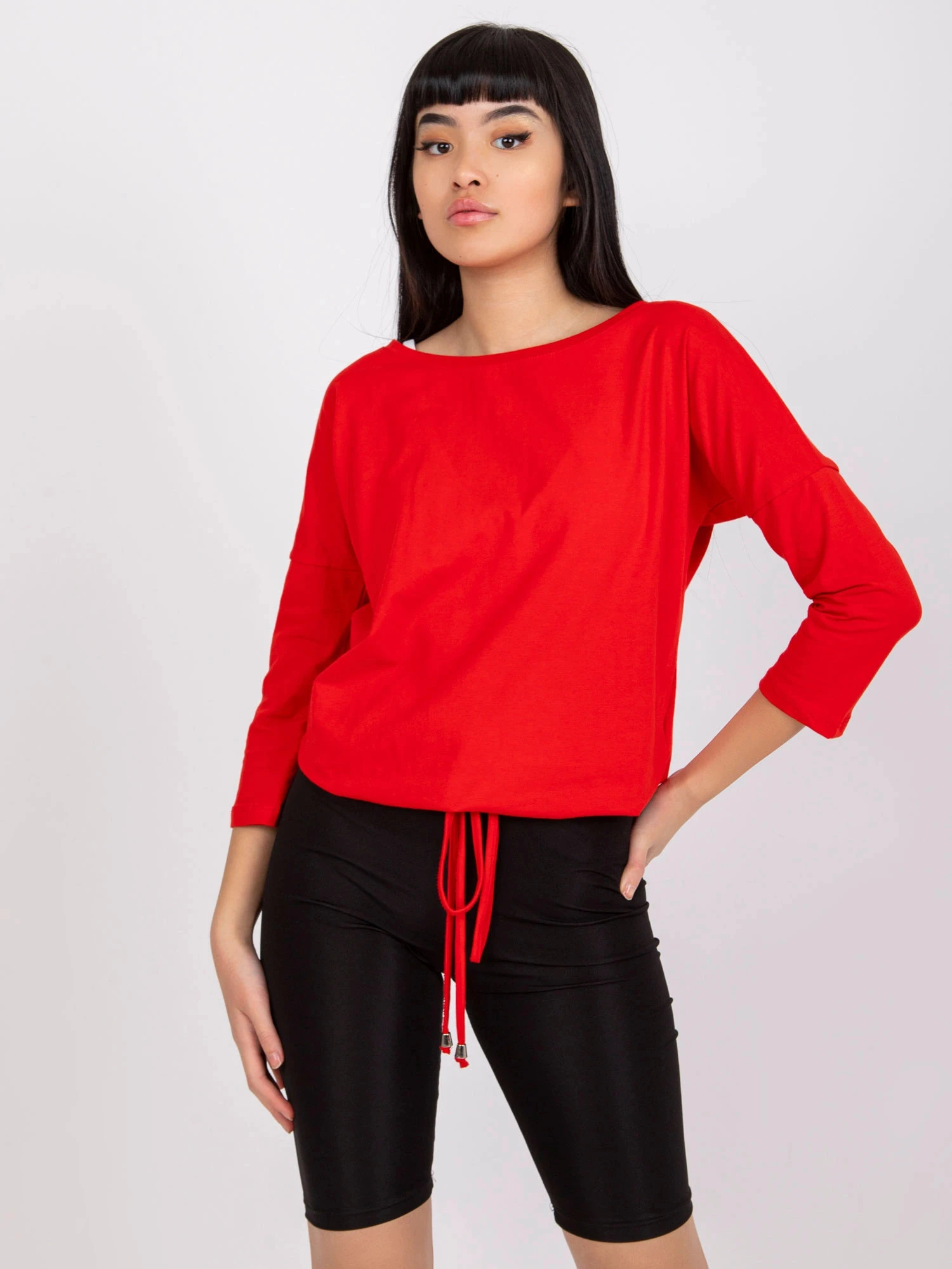 Přidání recenze k Červená volná dámská halenka se zavazováním na spodním okraji (4691)