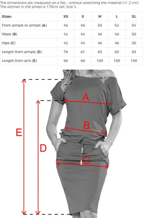 Modelka na fotografii je vysoká 170 cm a předvádí šaty ve velikosti S.