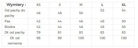 | Od podpaží k podpaží | 46 | 48 | 50 | 52 | 54 |
