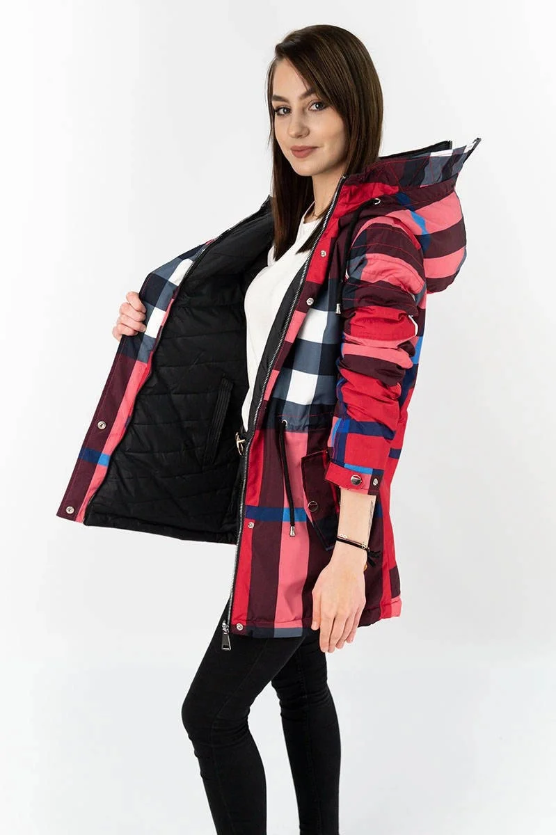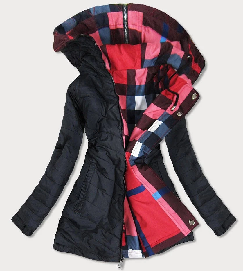 Přidání recenze k Červeno-černá oboustranná dámská bunda (W653)
