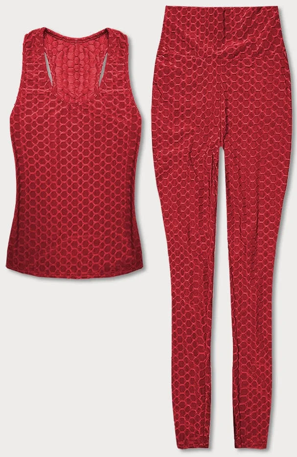 Červený sportovní komplet top a legíny model 18433385 - J.STYLE