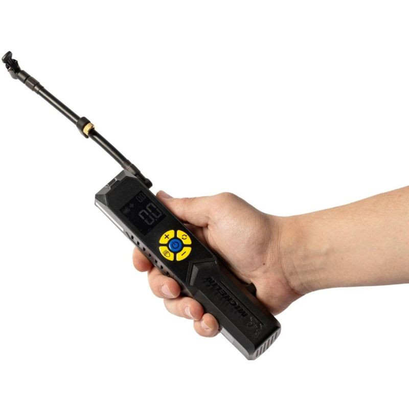 Lehký a elegantní design mini kompresoru umožňuje jeho uložení do tašky nebo batohu a jeho malé rozměry mu nebrání v tom, aby poskytoval vysoký výkon a tlak až 150 PSI (cca 10,2 BAR) bez externího zdroje energie.