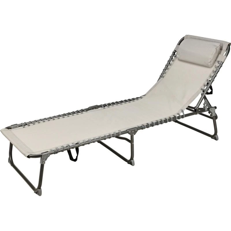 Siedzisko leżaka wykonano z materiału Textilene, który jest przewiewny i odporny na wilgoć, co sprawia, że komfort użytkowania jest wysoki nawet w ciepłe dni. Materiał jest łatwy do czyszczenia – wystarczy przetrzeć go wilgotną ściereczką, aby usunąć kurz i zabrudzenia. Dzięki odporności.