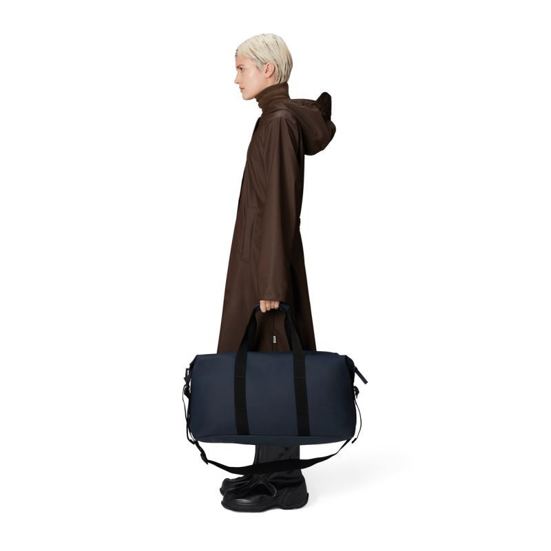 Torba weekendowa Hilo jest wykonana z charakterystycznej dla Rains wodoodpornej tkaniny PU, zaprojektowanej z myślą o wytrzymałości, trwałości i gładkości w dotyku.