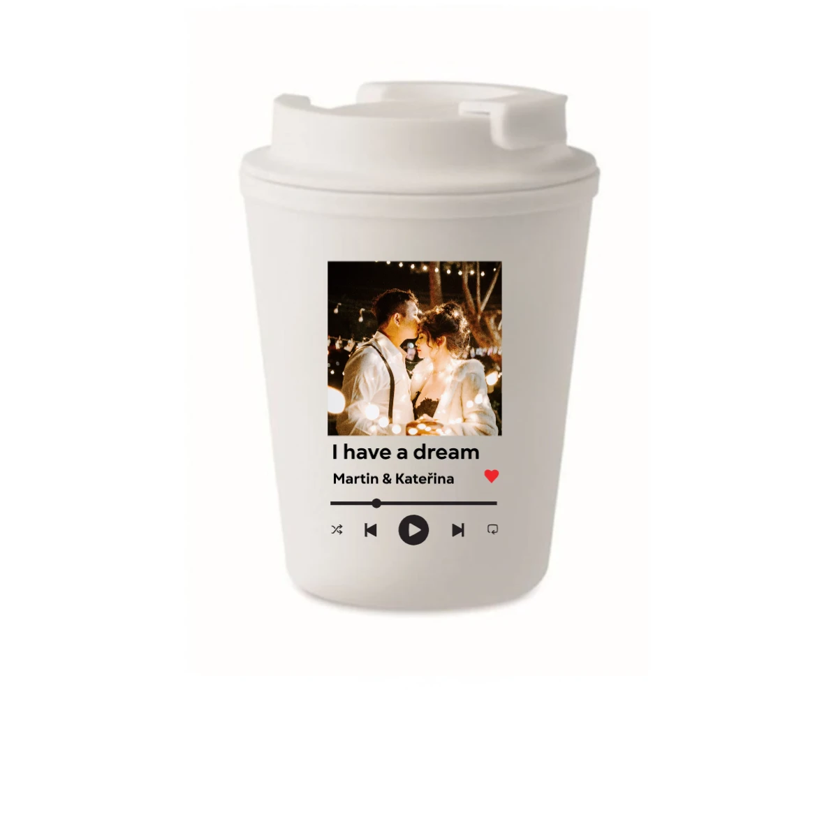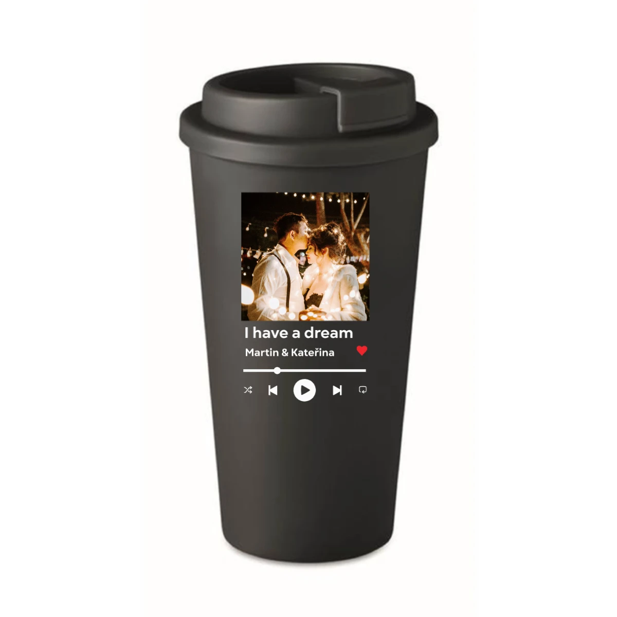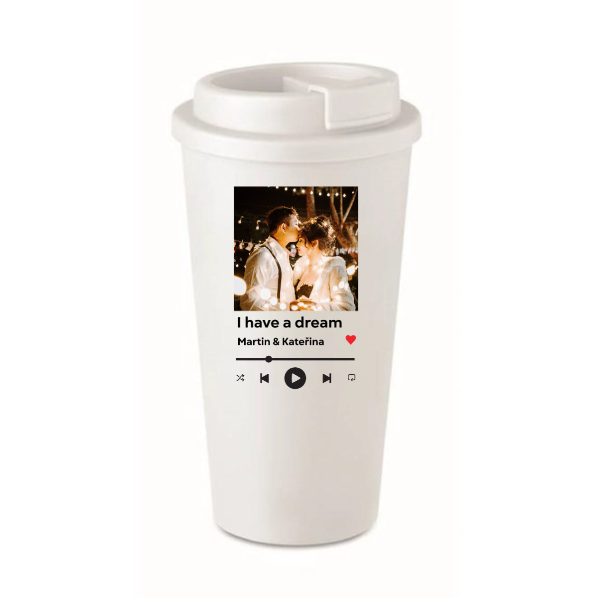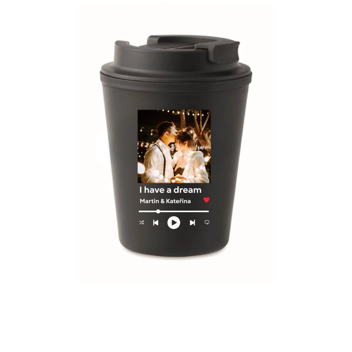 Cestovní termohrnek s vlastním odkazem na oblíbenou písničku