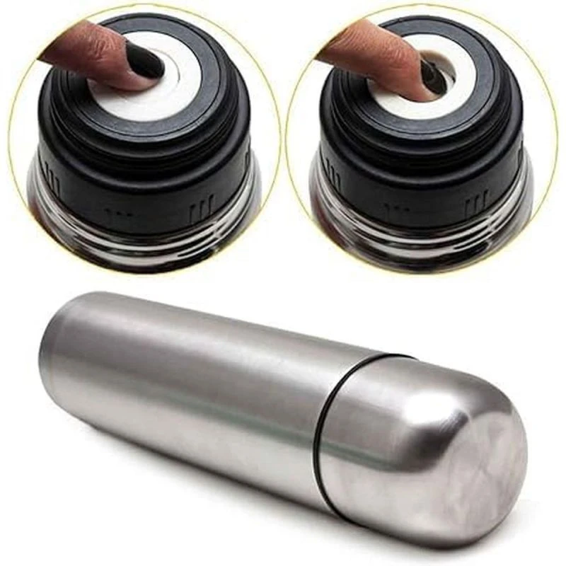 Butelka ma szczelną nakrętkę z silikonową uszczelką dzięki czemu szybko i łatwo napijesz się ulubionego napoju bez utraty jego ciepła.