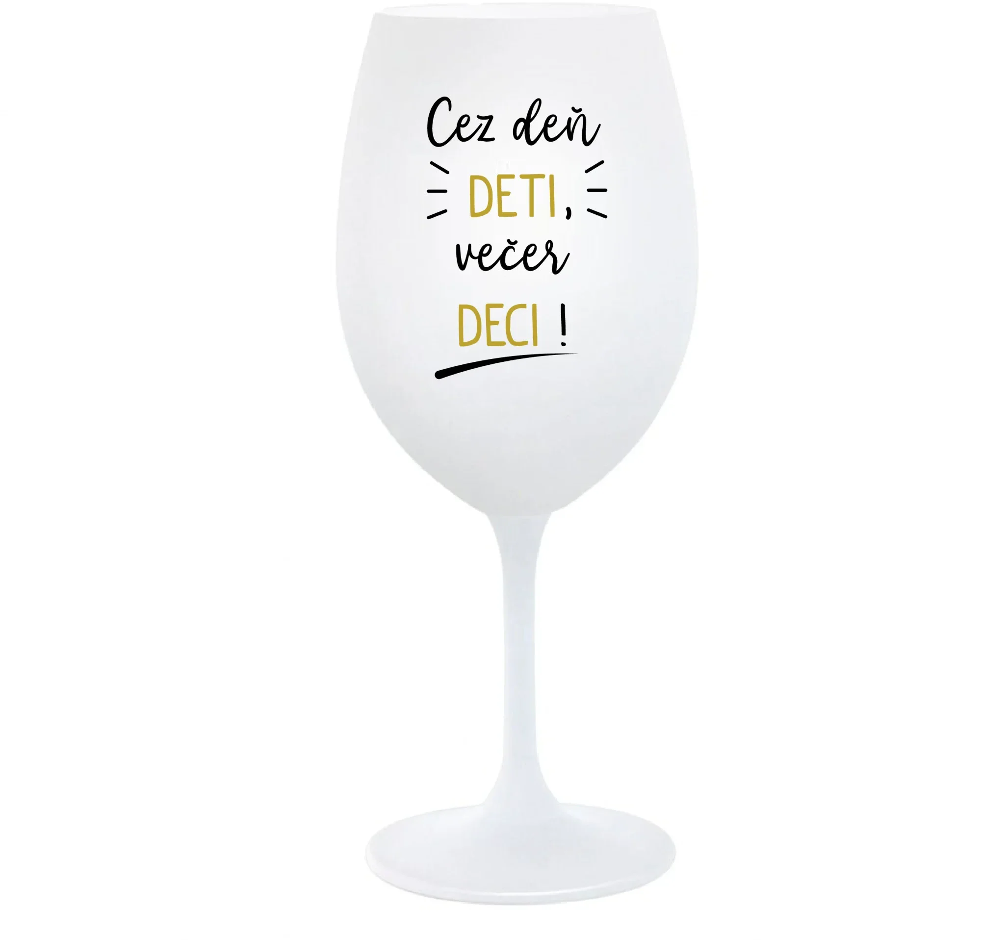 CEZ DEŇ DETI, VEČER DECI! - biely pohár na víno 350 ml