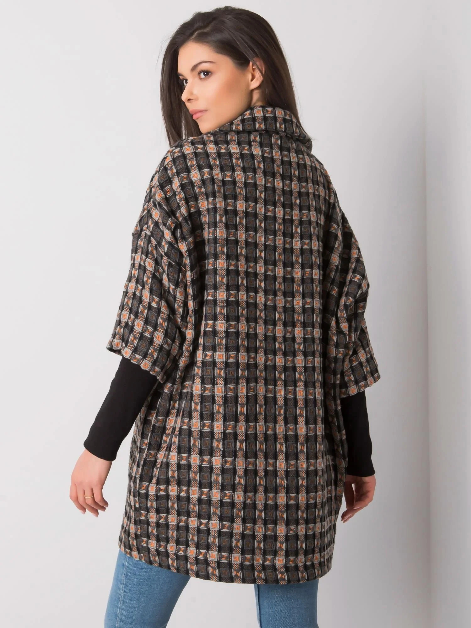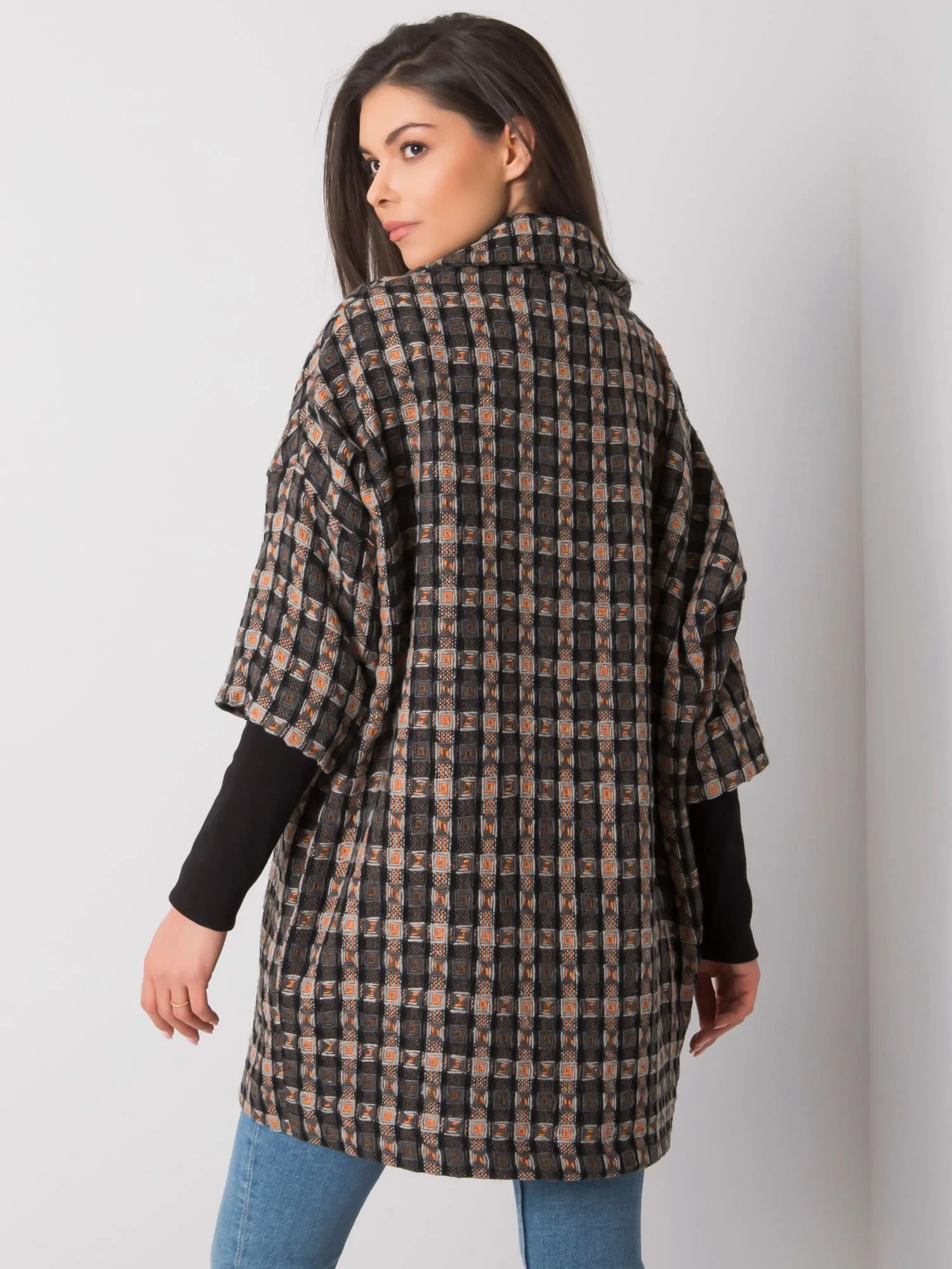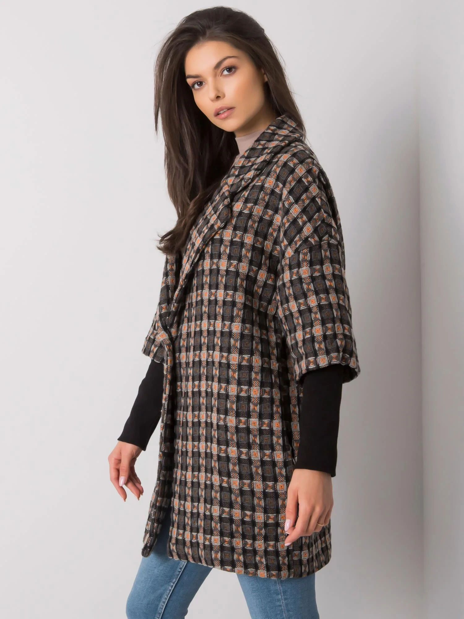 RUE PARIS Šedooranžový vzorovaný kabát.