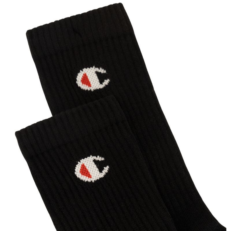 Ponožky Champion 6-pack black U20005 KK001 Ponožky Champion jsou vhodné pro každodenní nošení. Díky převažující bavlně ve složení materiálu jsou prodyšné. Přídavek syntetických vláken zlepšuje odolnost a pružnost. Pružné vysoké žebrování nezpůsobuje pocit tlaku a stabilizuje ponožky. Zóna špičky a paty je zesílená. 6 párů ponožek je součástí balení. Materiál: 70 % bavlna, 28 % polyester, 2 % elastan.
