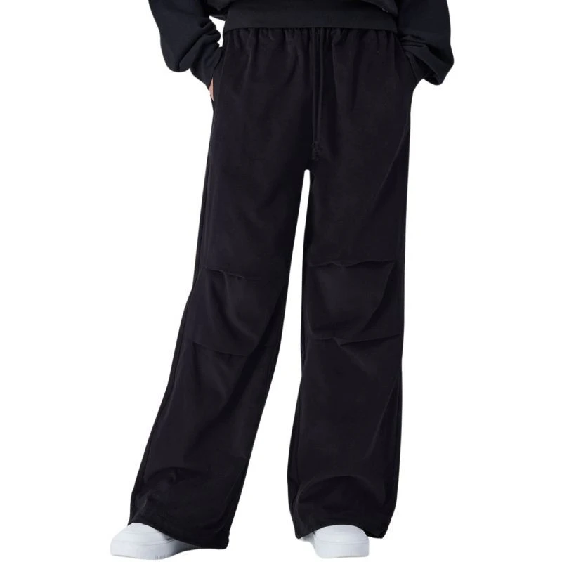 - Volný střih se širokými nohavicemi zakončený stahovacím lemem se stoperem.