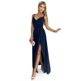 CHIARA Tmavě modré elegantní dámské maxi šaty na ramínkách model 18355310 - numoco