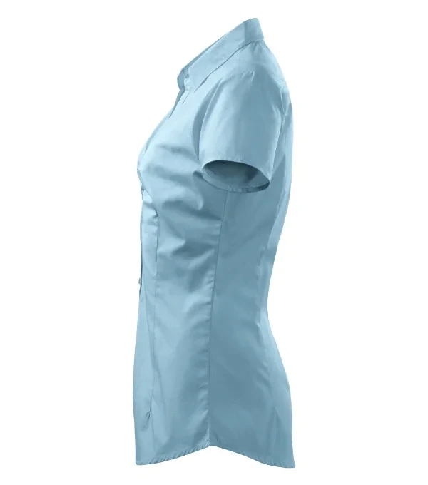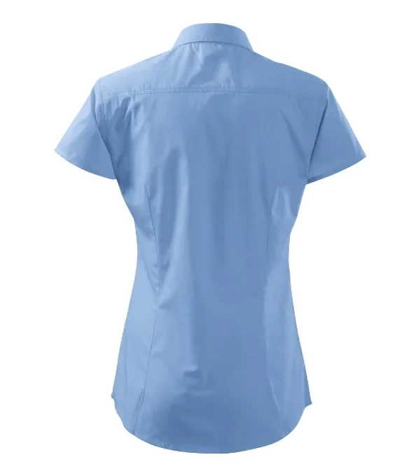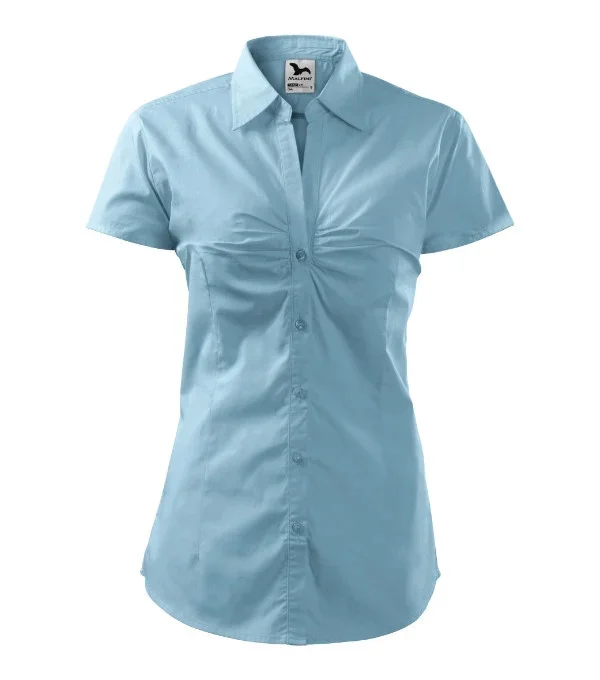 jednoduché sedlo a záševky na zadním dílu pasové záševky oblast hrudníku zdobena řasením dvoudílný košilový límec s rozhalenkou přední kraje začištěny légou knoflíčky v barvě materiálu (1 náhradní navíc) tvarovaný dolní kraj