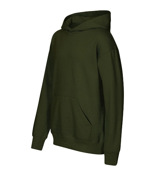 bez etikety - připraveno na rebranding volný střih s bočními švy kapuce s podšívkou neutrální velikostní štítek v boční části průkrčníku vnitřní část průkrčníku začištěna páskou nízkohlavicové rukávy nakládaná kapsa ve stylu klokanky dolní lem a manžety rukávů z žebrového úpletu 2:2 s 5 % elastanu vnitřní strana počesaná