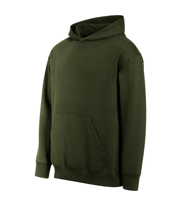 bez etikety - připraveno na rebranding volný střih s bočními švy kapuce s podšívkou neutrální velikostní štítek v boční části průkrčníku vnitřní část průkrčníku začištěna páskou nízkohlavicové rukávy nakládaná kapsa ve stylu klokanky dolní lem a manžety rukávů z žebrového úpletu 2:2 s 5 % elastanu vnitřní strana počesaná