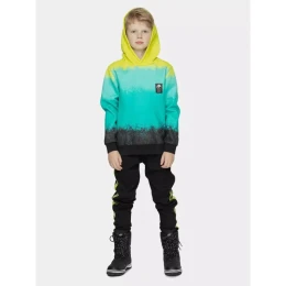 Wnętrze wykończone jest miękkim, ciepłym meszkiem, który zapewnia komfort w chłodne dni. Dwuwarstwowy kaptur chroni przed wiatrem, a elastyczne ściągacze w mankietach i u dołu bluzy dbają o dobre dopasowanie. Sportowego charakteru dodaje grafika na klatce piersiowej oraz ciekawa kolorystyka.