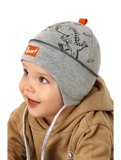 Vázaná chlapecká čepice s potiskem dinosaurů. Contr. sur. materiál: 95% bavlna, 5% elastan