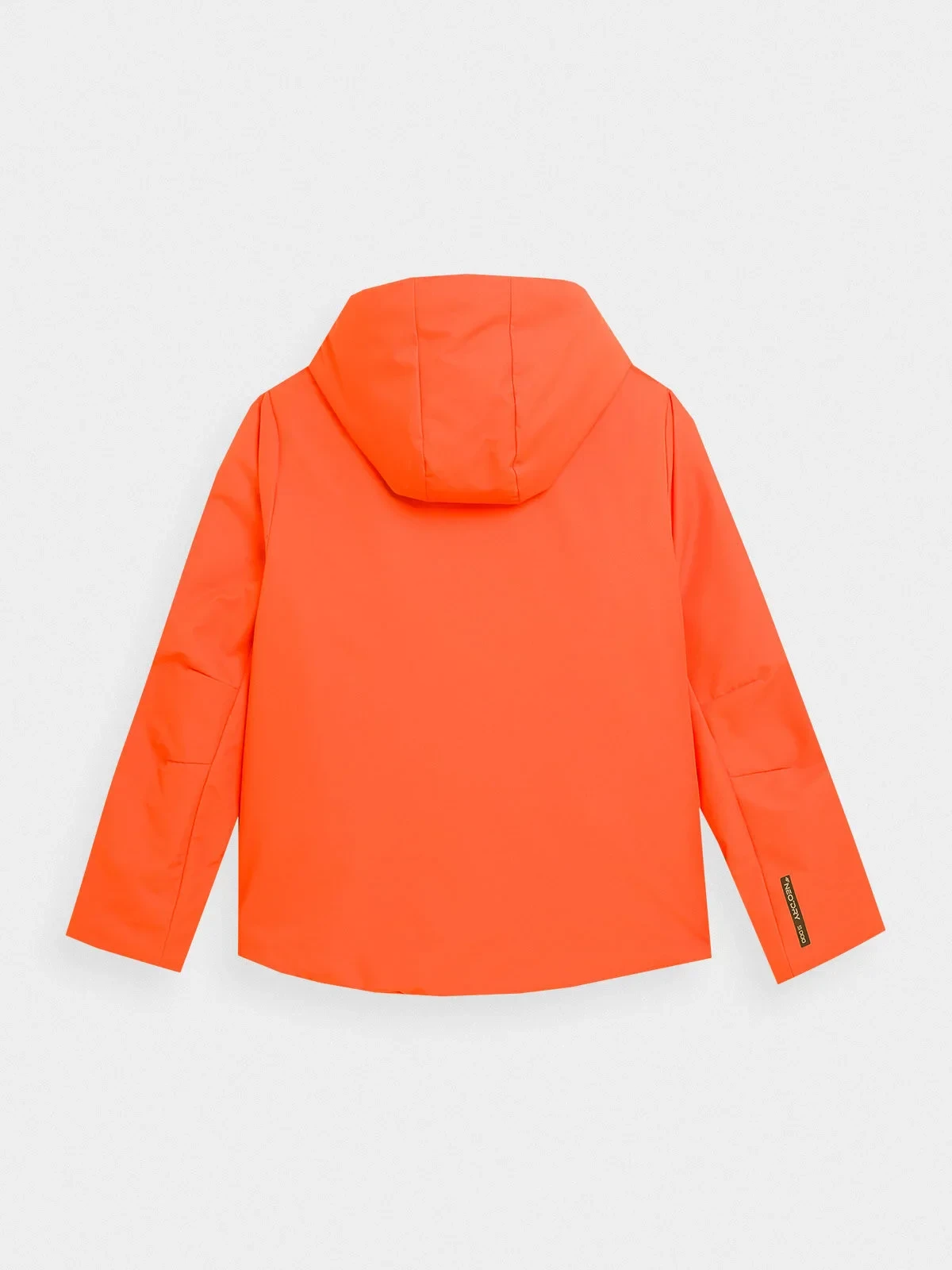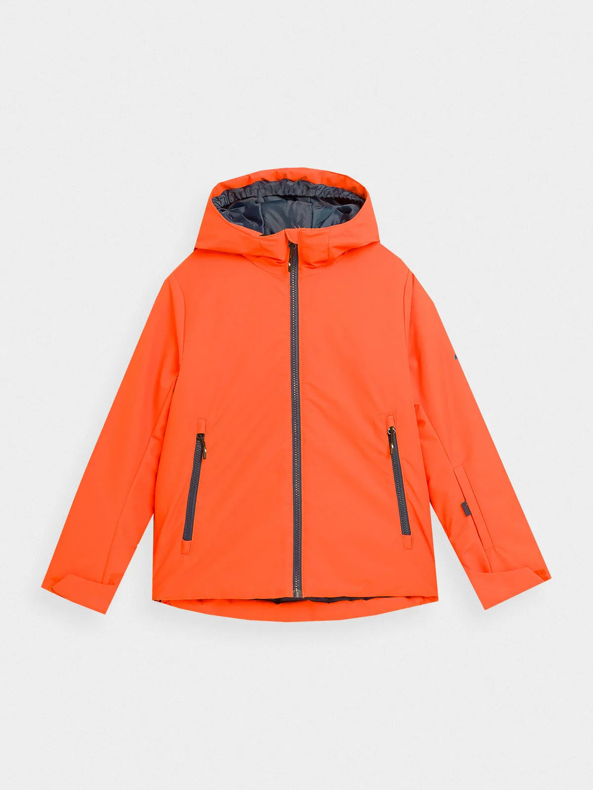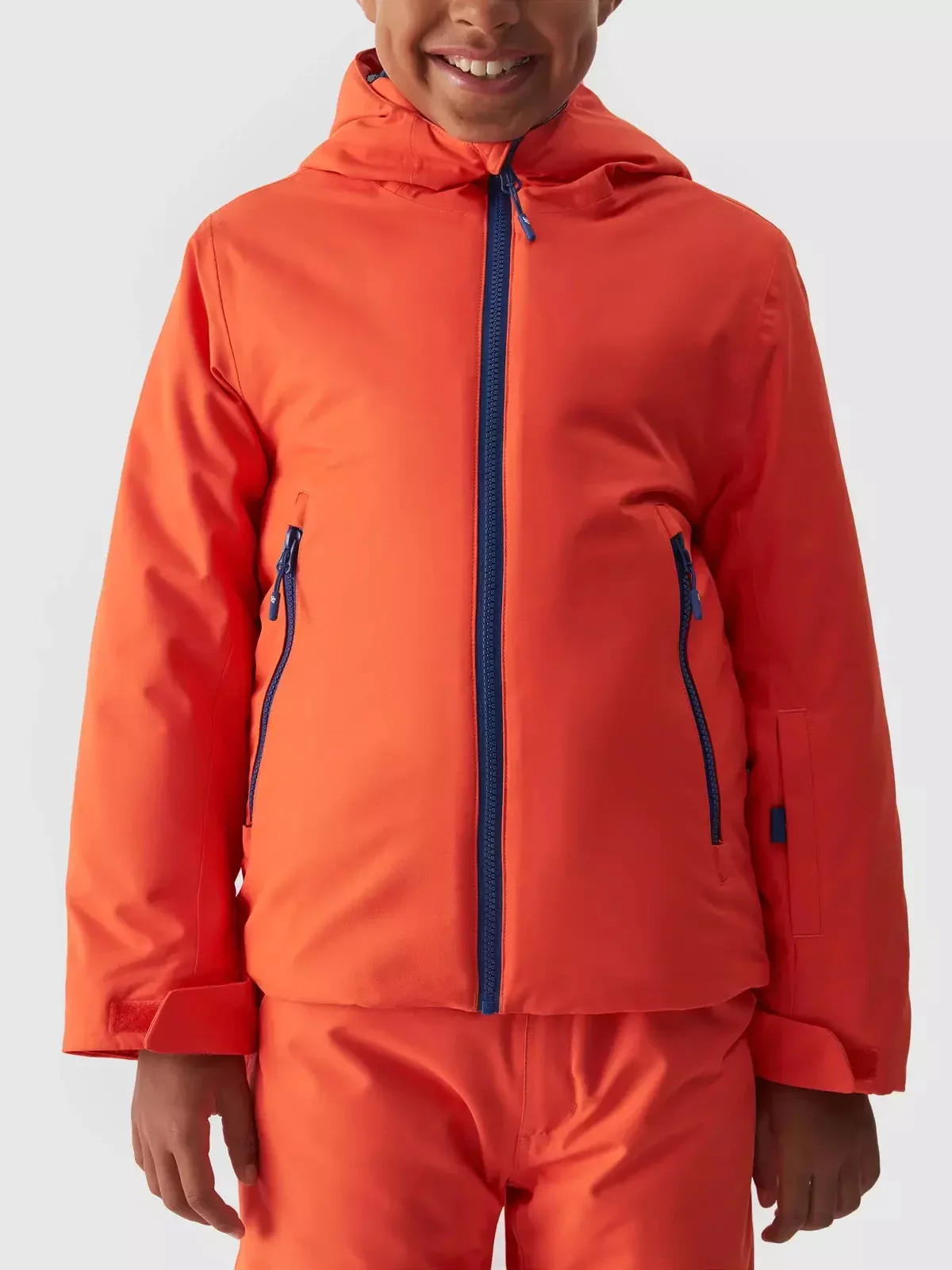 Chlapecká lyžařská bunda na zip s kapucí z voděodolného materiálu s membránou NeoDry o parametrech nepromokavosti a prodyšnosti 5000/3000.