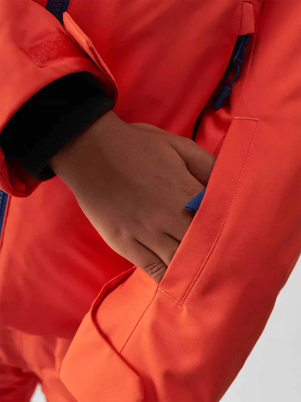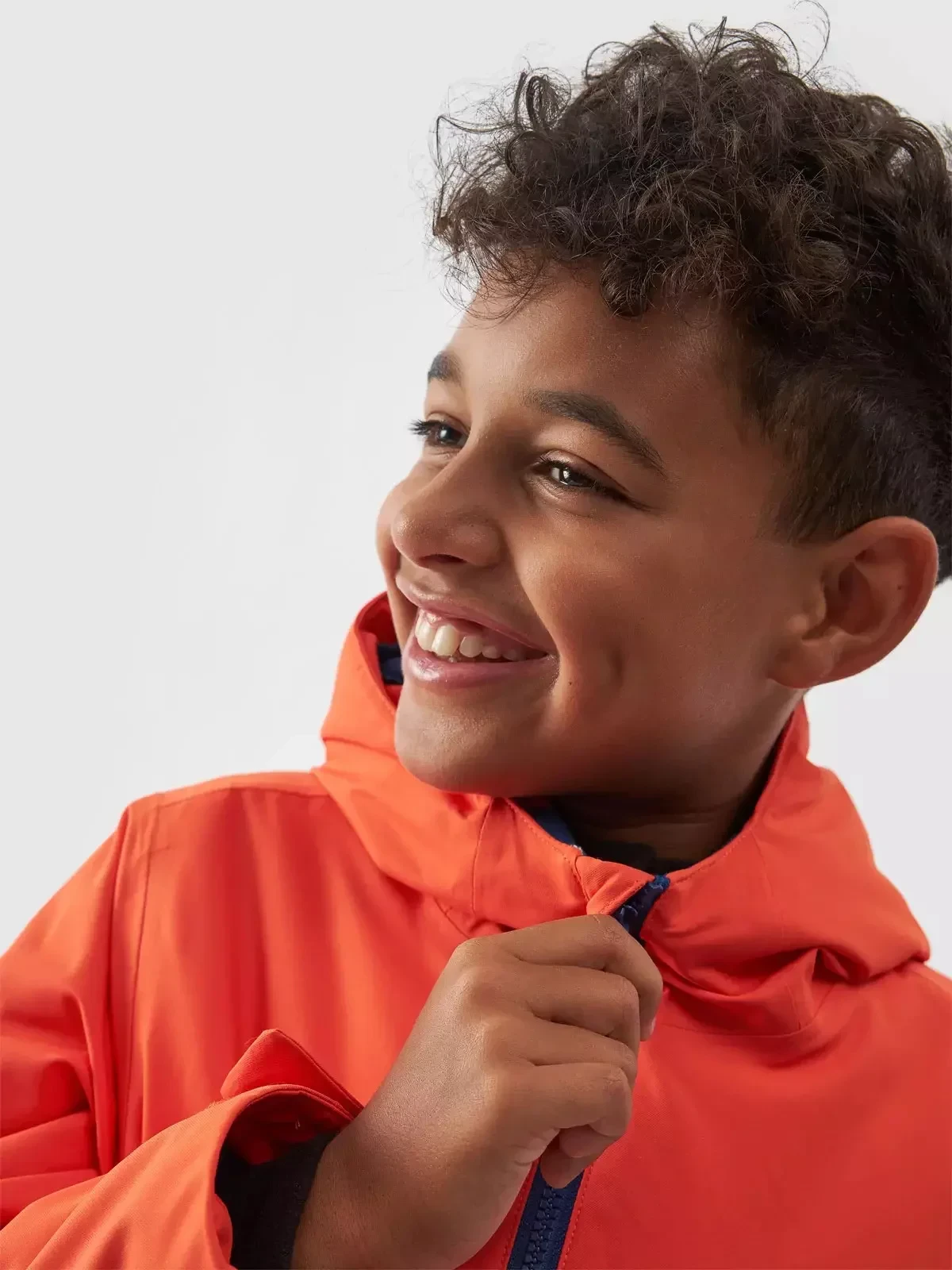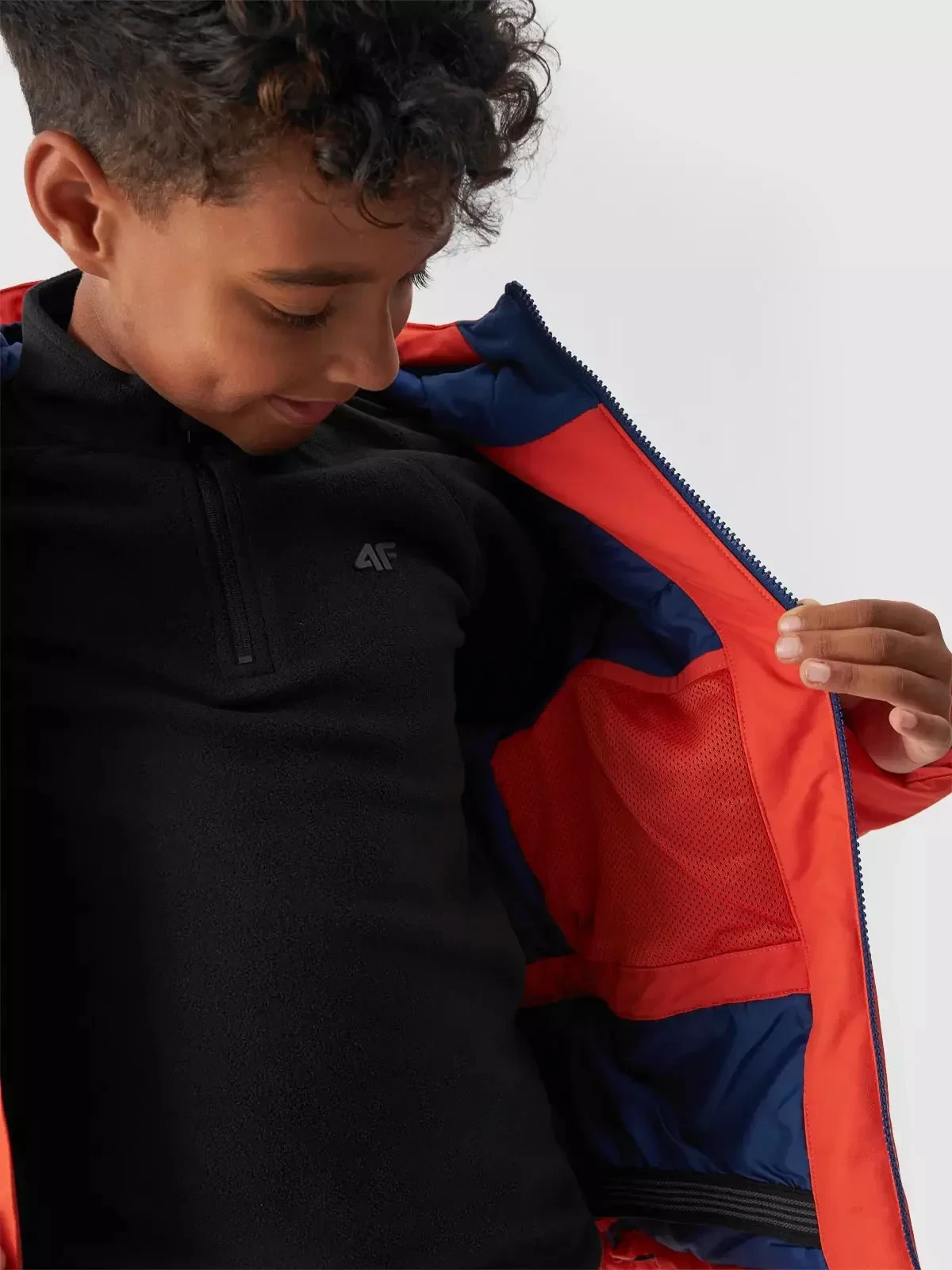 Chlapecká lyžařská bunda na zip s kapucí z voděodolného materiálu s membránou NeoDry o parametrech nepromokavosti a prodyšnosti 5000/3000.