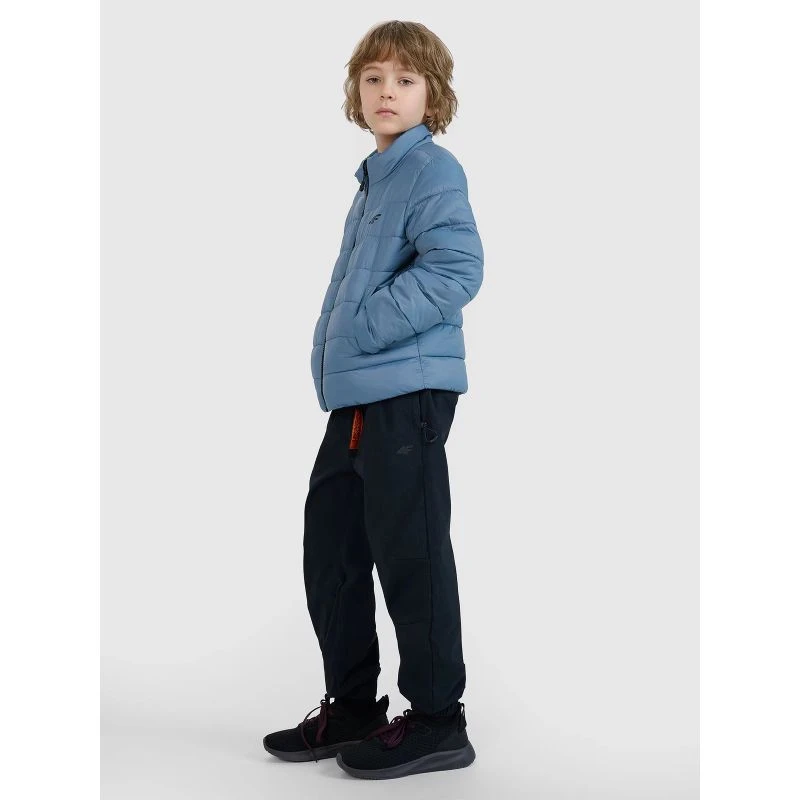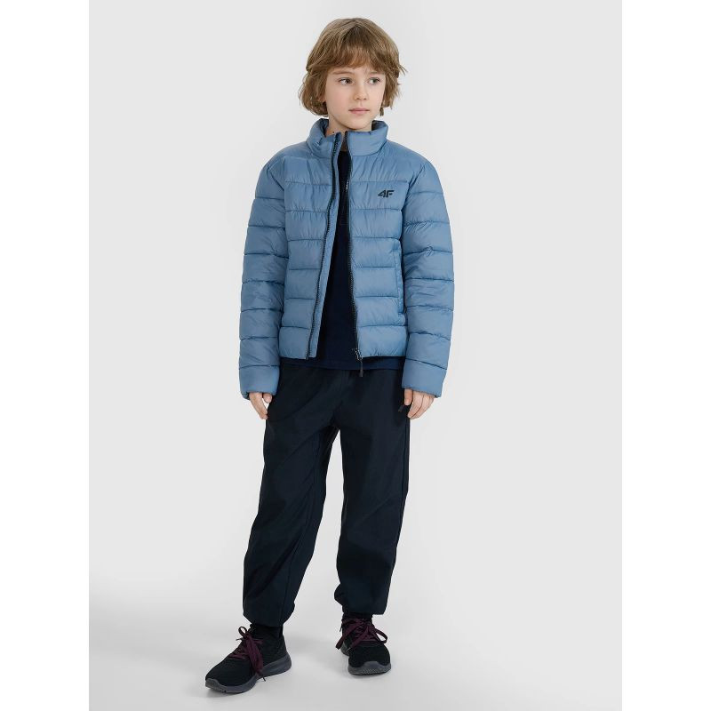Kurtka puchowa chłopięca 4Fto idealny wybór na cieplejsze dni w okresie przejściowym, łącząca funkcjonalność z nowoczesnym designem. Dzięki lekkiej ocieplinie i niskiej objętości, zapewnia komfort cieplny bez obciążenia, a jej hydrofobowa powłoka chroni przed wilgocią.