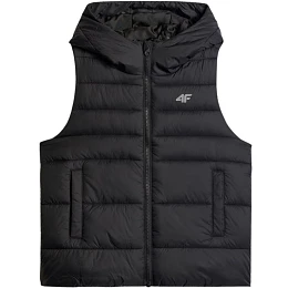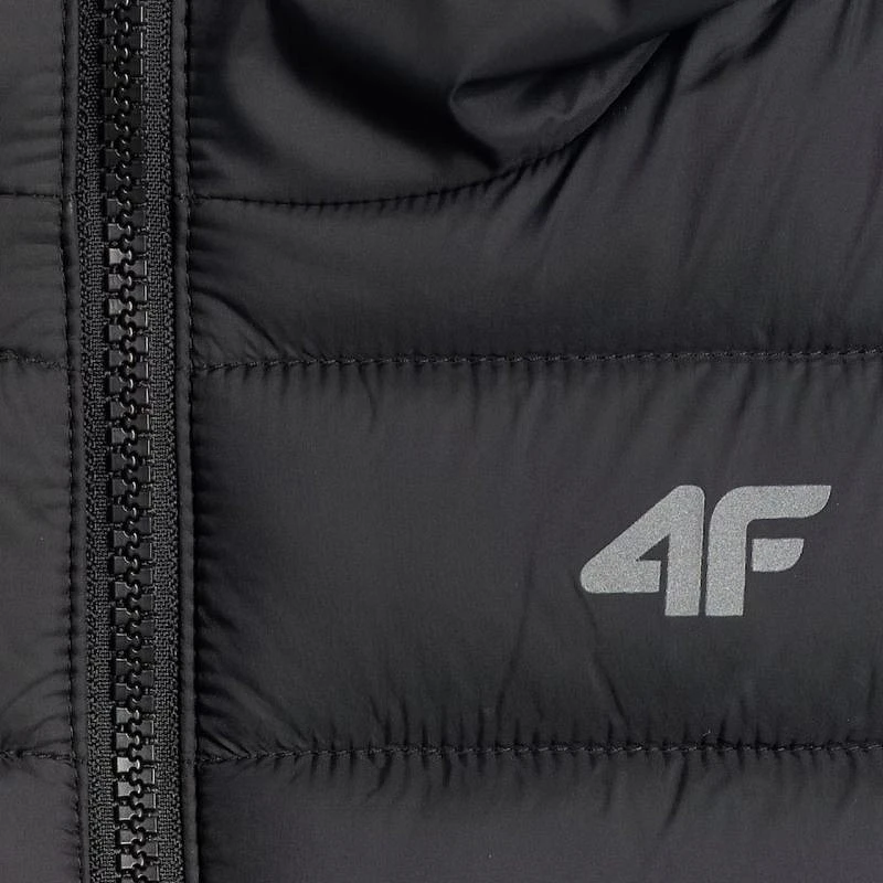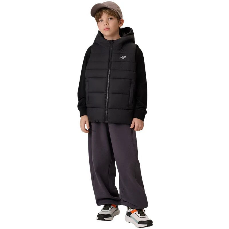 Kamizelka dla chłopca 4F M313 głęboka czerń 4FJWSS26TVJAM313 20S Kamizelka dla chłopca 4F to praktyczna warstwa docieplająca, która sprawdzi się na co dzień. Dane techniczne:· Materiał główny: 100% poliamid· Podszewka: 100% poliester· Wypełnienie: 100% poliester· Technologia 4FWarm - wspiera komfort cieplny i pomaga utrzymać przyjemne ciepło· Hydrofobowa impregnacja - ogranicza wchłanianie wody i chroni przed wilgocią· Lekka ocieplina syntetyczna - daje ciepło bez ciężaru i ułatwia codzienną pielęgnację· Symetryczne pikowanie równomiernie rozkłada ocieplenie i zwiększa komfort noszenia· Kaptur i stójka pod szyją - osłaniają przed chłodem i poprawia komfort w wietrzne dni· Zamek z wewnętrzną plisą - pomaga zatrzymać ciepło wewnątrz· Dwie kieszenie otwarte - bezpieczne miejsce na drobiazgi· Regularny krój - wygodnie układa się na sylwetce i nie ogranicza aktywności