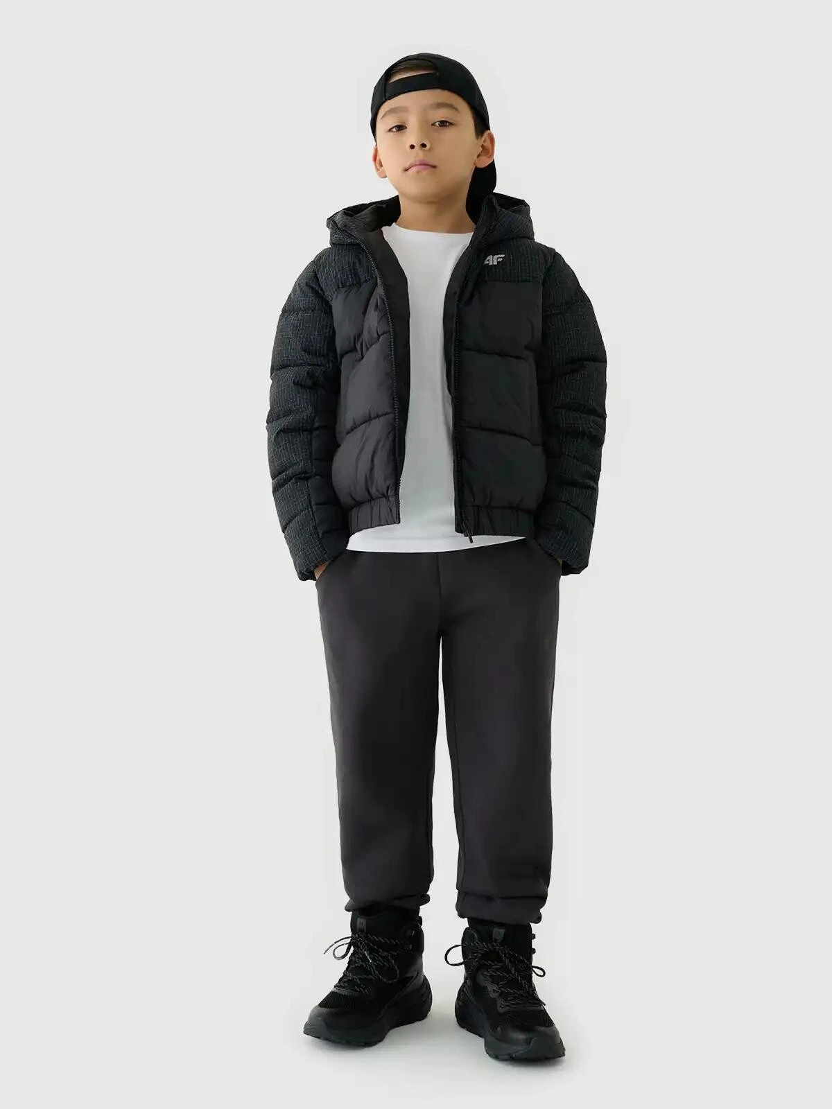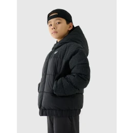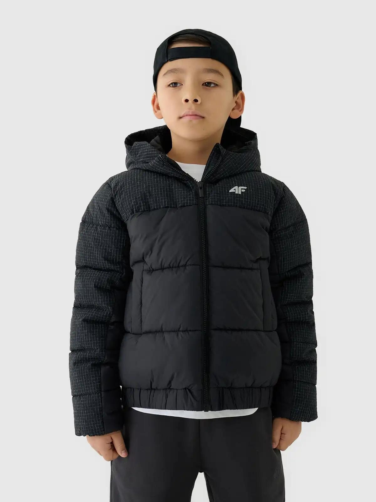 Chlapecká bunda 4F vyniká moderním designem s prošíváním a kontrastními detaily, díky čemuž se snadno kombinuje s dalšími kousky zimního šatníku.