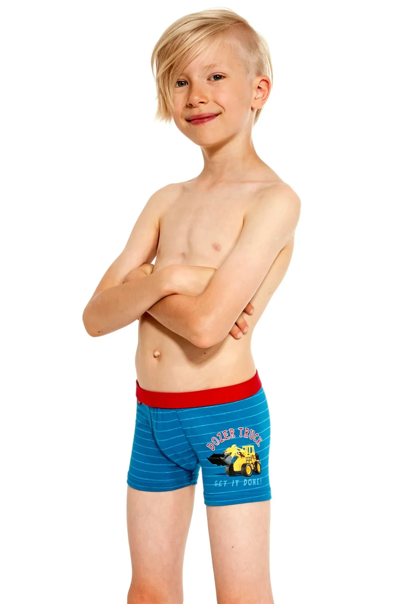 Chlapecké boxerky 701/76 Dozer truck 2 CORNETTE - oceán barva - vyrobené z velmi kvalitní bavlny - se zábavným potiskem - má gumu sešitou plochými švy - okraje nohaviček netlačí do stehen - boxerky jemně obepínají těloMateriálové složení: 95% bavlna + 5% elastan