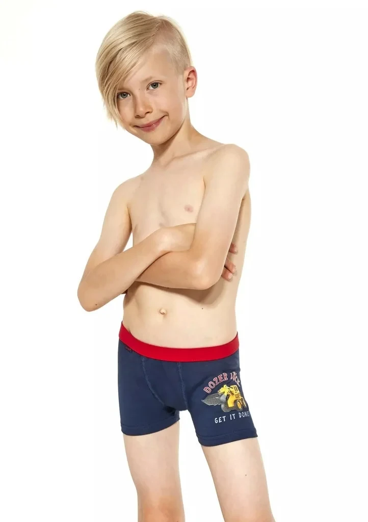 Dětské boxerky Cornette. Velmi příjemný a pružný materiál chlapeckých boxerek, krásné a jemné barvy doladěné potiskem obrázků. Horní obvod tvoří pružná širší guma potažená látkou pro komfortní nošení. Obvod nohaviček je volně přeložen, a proto se nezařezává. Do vnitřního dílu je zapracován bavlněný klínek.
