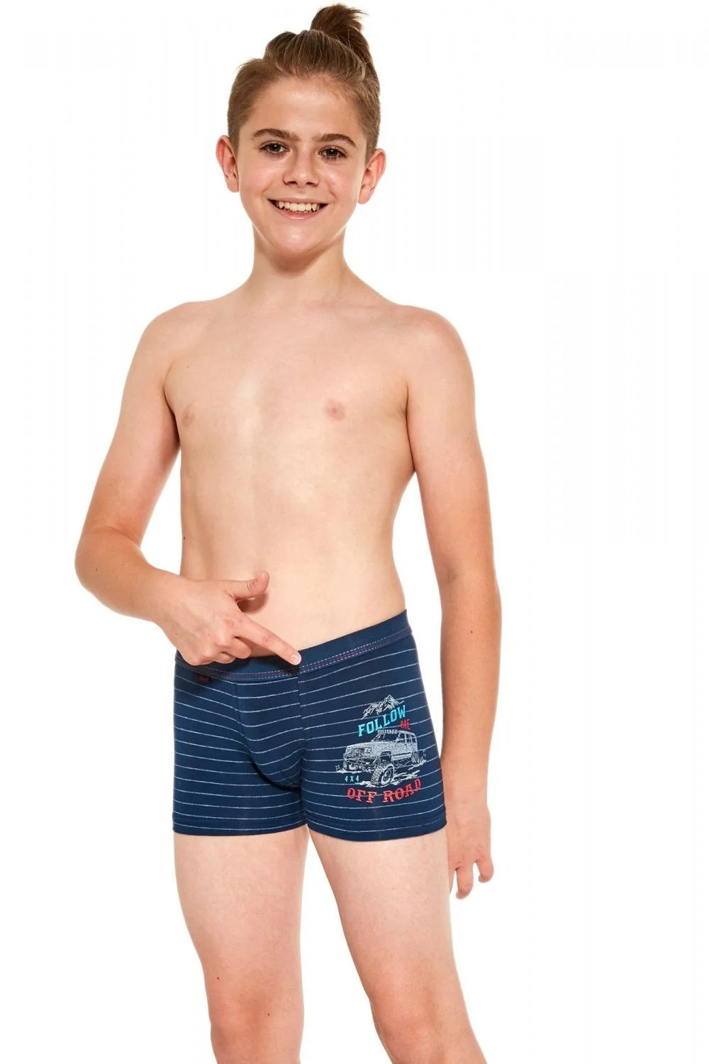Chlapecké boxerky 700/120 Follow me2 Cornette - vyrobené z velmi kvalitní bavlněné látky - se zábavným potiskem - má gumu sešitou plochými švy - okraje nohaviček netlačí do stehen - boxerky jemně obepínají tělo