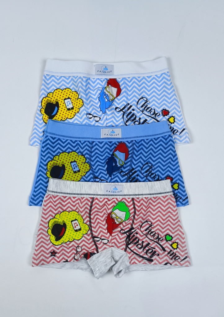 Dětské boxerky Gasolino. Chlapecké boxerky jsou z velmi příjemného a pružného materiálu, různě barevné, s potiskem obrázku. Horní obvod tvoří pružná širší guma potažená látkou pro komfortní nošení. Obvod nohaviček je volně přeložen, a proto se nezařezává. Do vnitřního dílu je zapracován bavlněný klínek. Barva Vám bude vybrána náhodně nebo můžete barvu poznačit do poznámky. Cena je za jeden kus boxerek.