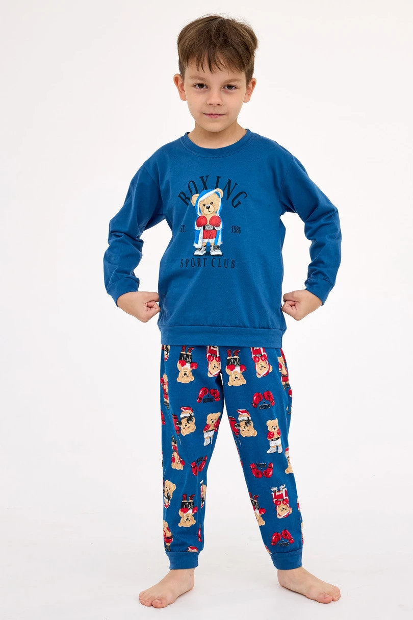 Chlapecké pyžamo BOY KIDS DR 593/178 BOXER představuje pohodlí a styl v jednom. Je vyrobeno ze 100% kvalitní, měkké bavlny a poskytuje pohodlí a prodyšnost po celou noc. Horní díl s dlouhými rukávy zdobí na přední straně barevný potisk, který dodává chlapecký nádech. Manžety, spodní část a nohavice jsou lemovány elastickými manžetami, které zajišťují dokonalé přizpůsobení a zabraňují shrnování látky během spánku. Součástí soupravy jsou dlouhé vzorované kalhoty v kontrastní barvě. Celá souprava je zabalena v atraktivní krabici skvělý nápad na dárek.