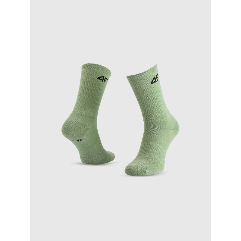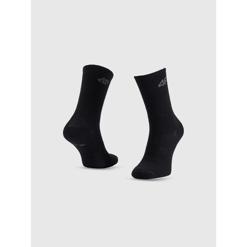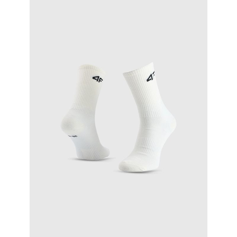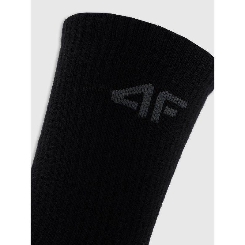 Wykonane w 66% z bawełny, są przyjemne w dotyku i trwałe, a dodatek 30% poliamidu zwiększa odporność materiału na rozciąganie i zagniecenia. Subtelne logo 4F na mankiecie dodaje sportowego charakteru. W zestawie znajdują się 4 pary, co czyni go praktycznym i ekonomicznym rozwiązaniem.