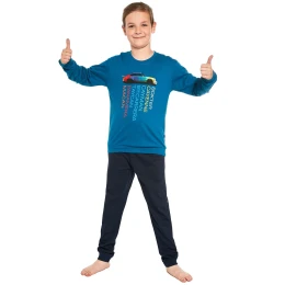 Chlapecké pyžamo 267/150 Models CORNETTE - vyrobené z vysoce kvalitní a měkké bavlny - světle modré tričko s dlouhými rukávy - na přední straně ozdobené potiskem - pohodlné jednobarevné dlouhé kalhoty - pohodlná guma v paseMateriálové složení: 100% bavlna