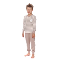 Chlapecké pyžamo 4570 Doctornap - vyrobené z velmi kvalitní a příjemné bavlny - béžové pruhované tričko s dlouhými rukávy - na přední straně ozdobené potiskem - kontrastní lemování manžet a výstřihu - dlouhé béžové kalhoty - certifikát OEKO-TEX Standard 100