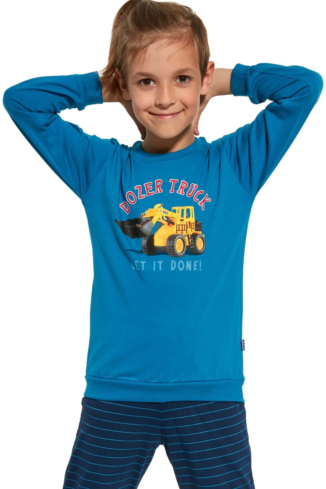 Chlapecké pyžamo 478/117 Dozer truck CORNETTE - z vysoce kvalitní a měkké bavlny - tričko je modré barvy s dlouhými rukávy - zdobené barevným potiskem - dlouhé vzorované kalhoty mají pohodlnou gumu v paseMateriálové složení: 100% bavlna
