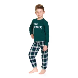 Chlapecké pyžamo 7342 plus Doctornap - z vysoce jakostní bavlny - smaragdové tričko s dlouhými rukávy - kulatý výstřih - přední strana ozdobená potiskem - dlouhé kárované nohavice zakončené stahovacím lemem