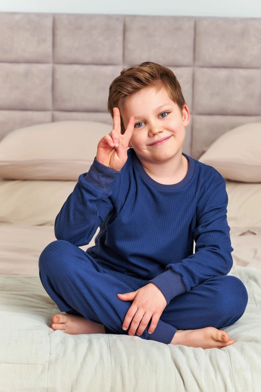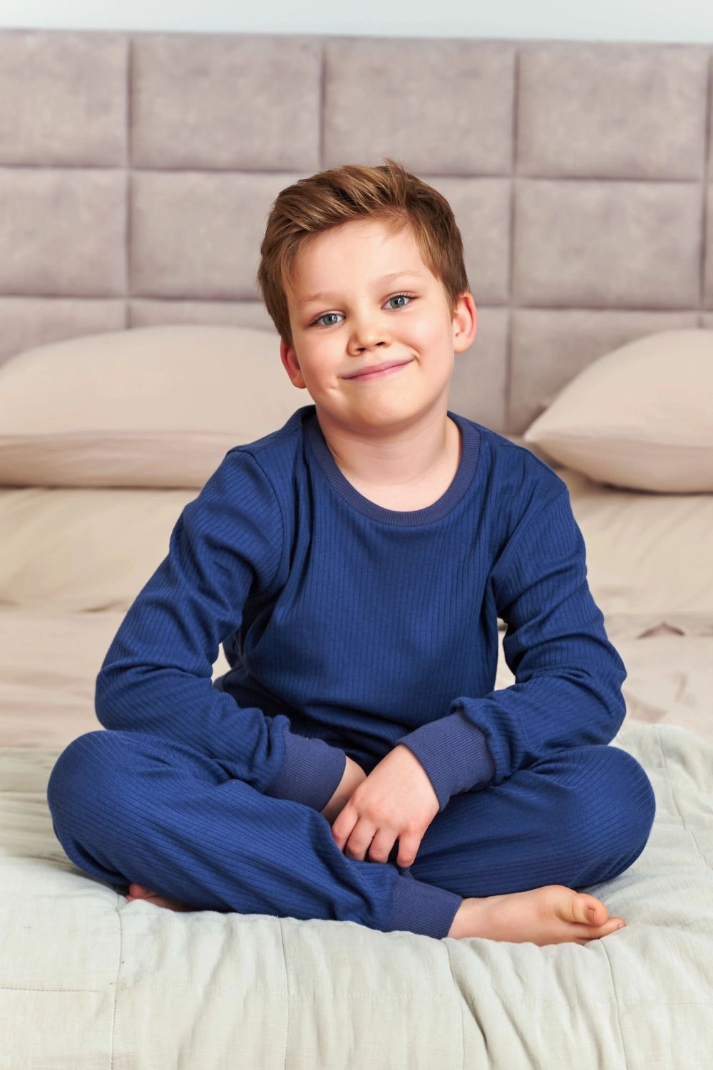 Chlapecké pyžamo 7351 cosmos Doctornap - z vysoce jakostní proužkované bavlny - tmavě modré tričko s dlouhými rukávy - kulatý výstřih - dlouhé nohavice tmavě modré barvy zakončené stahovacím lemem